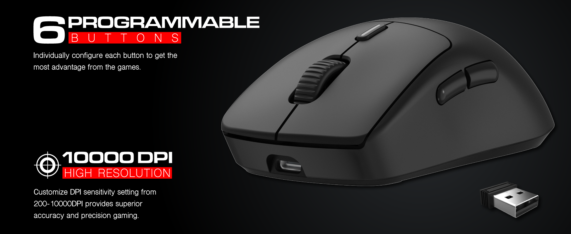 - DPI SWITCHING TECHNOLOGY WITH 200-10000DPI