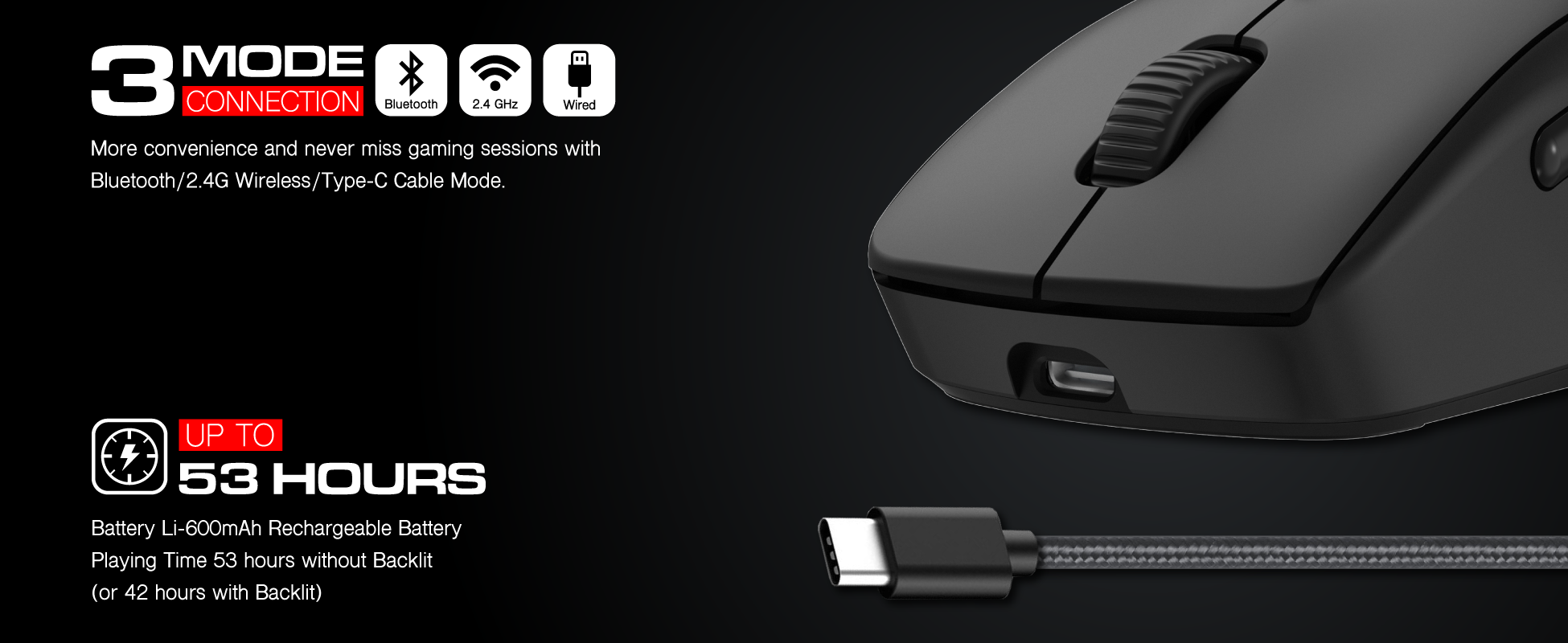 - TRI-MODE (BLUETOOTH / 2.4GHz / WIRED)